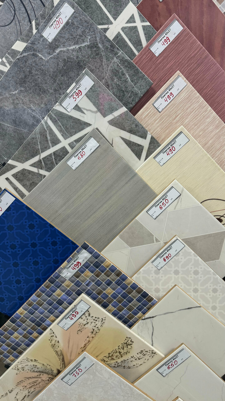- Большой ассортимент плитки и керамогранита