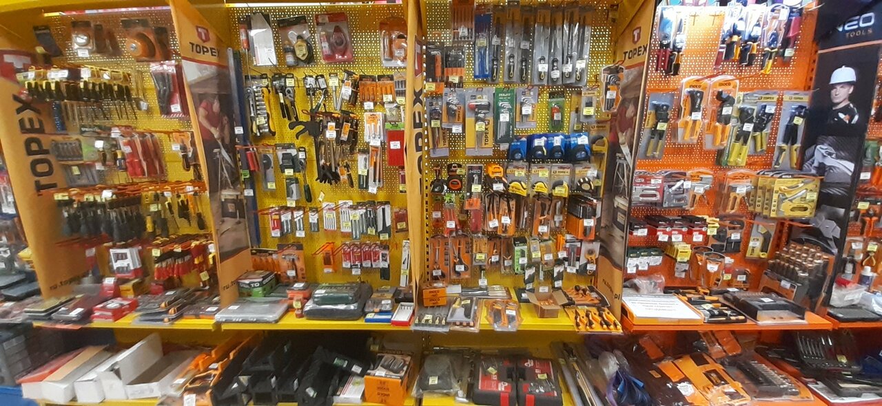 - Богатый ассортимент скобяных товаров, сантехники и электрики