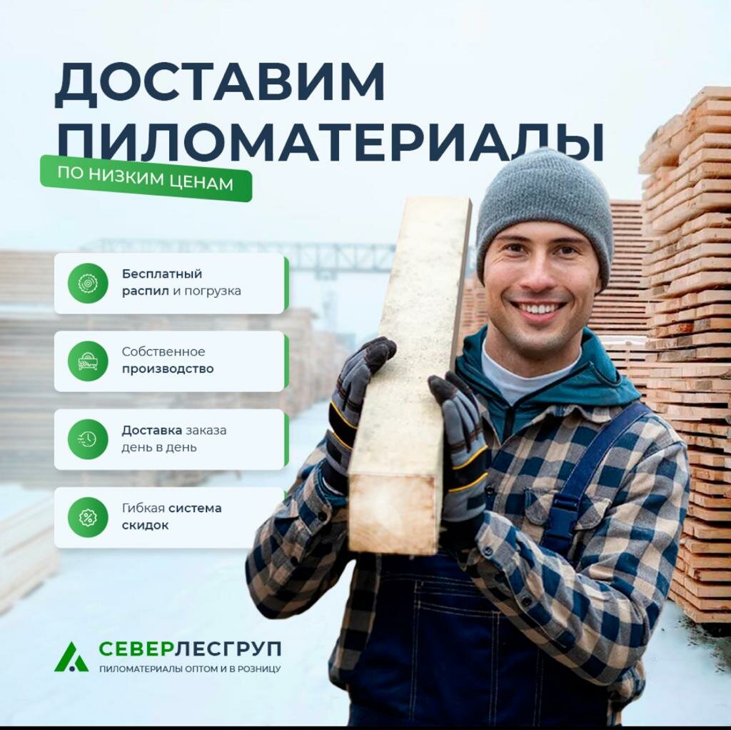 СеверЛесГруп — это отличная компания для покупки древесины. У них высокое качество продукции, широкий ассортимент и конкурентные цены. Обслуживание клиентов на высшем уровне, оперативная доставка и профессиональные консультации делают сотрудничество с ними приятным и эффективным. Рекомендую всем, кто ищет надежного поставщика древесины.