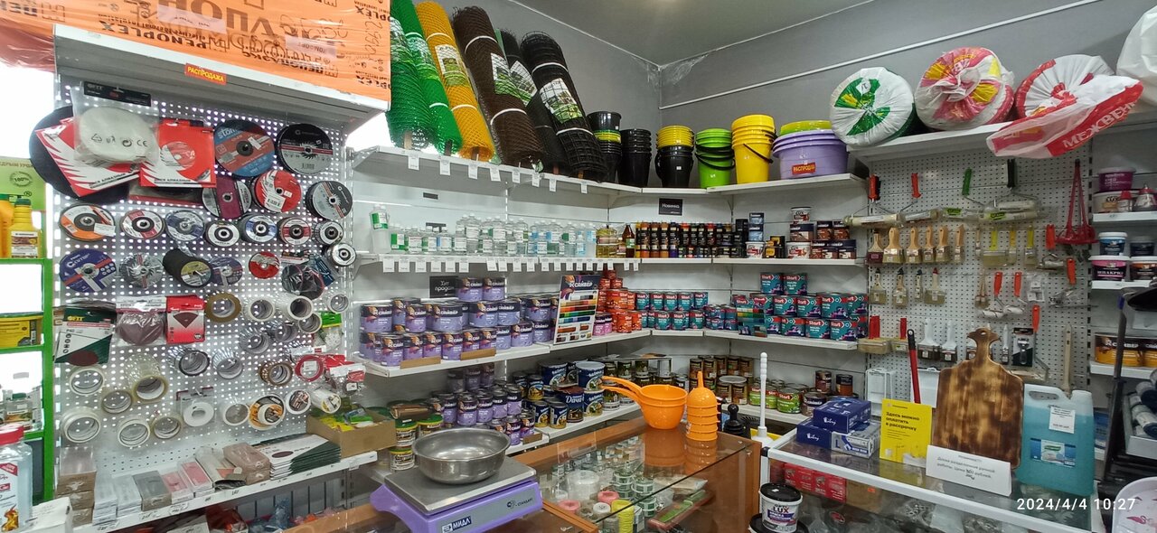 - Большой ассортимент товаров (мелочи для сантехники, монтажная пена, пленка для строительства)