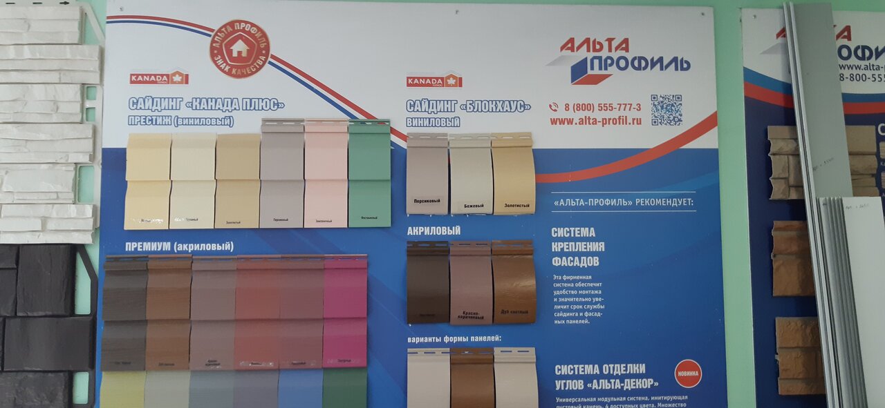 Хорошие цены на оконные добры. Хорошие подоконники. Неплохой ассортимент. Сайдинг дорогой, выбор невелик. Терминала нет, так что только наличка. Самое трудное это осилить дорогу к месту, которой просто нет.