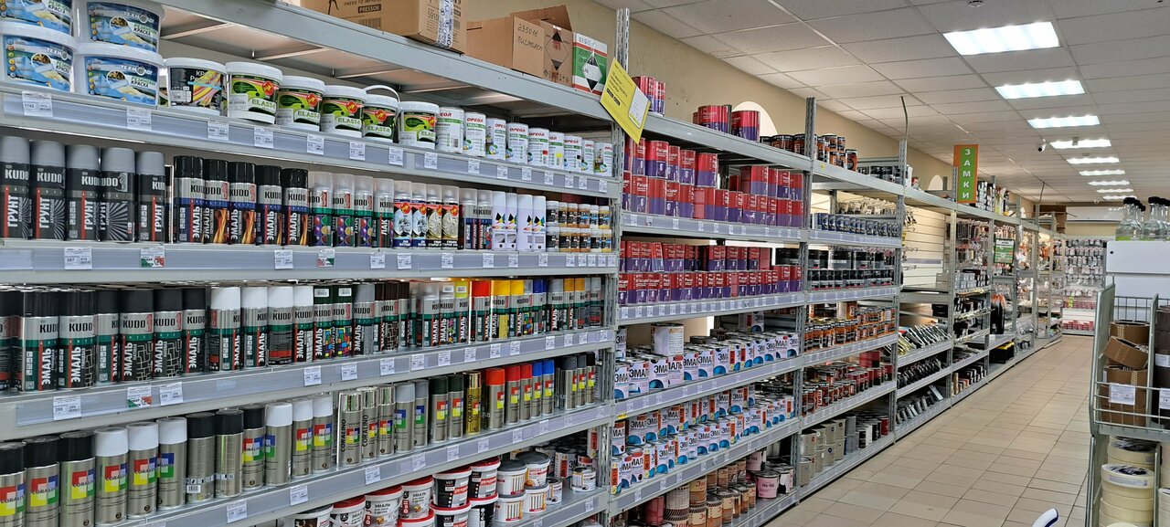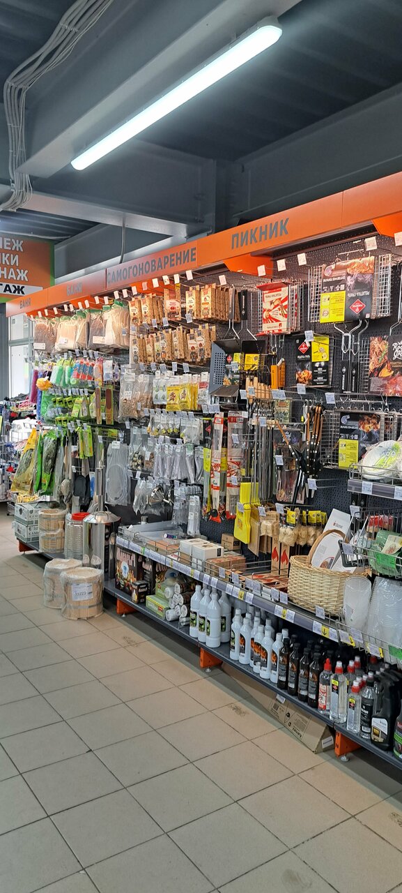 Хороший строительный магазин мини Леруа Мерлен. Рядом продукты. Пока жена ходит за продуктами можно зайти магазинчик и приборохлится по хозяйским нуждам.)))