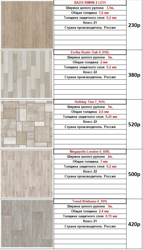 Ширина целого рулона 2,5м, Доп. защитный слой ПолиуретановыйОбщая толщина 3,3ммТолщина защитного слоя 0,2ммКатегория продукта Линолеум Бытовой