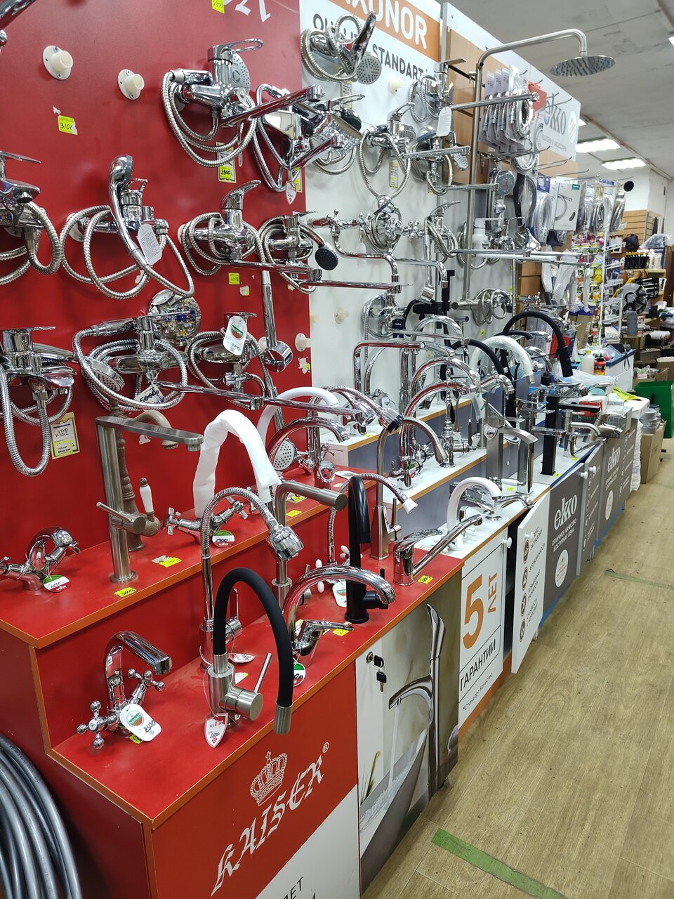 На красном стенде, отличные смесители. Цена хорошая. В магазине есть всё что нужно.
