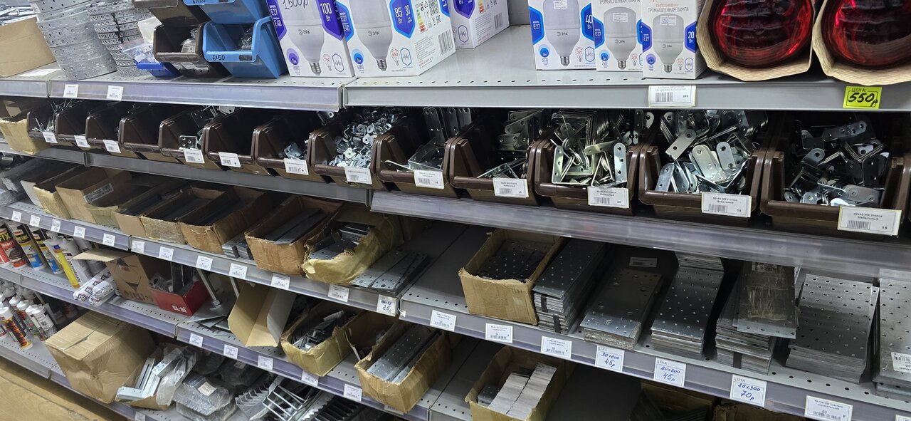 - Большой выбор крепежа, инструментов, хозтоваров