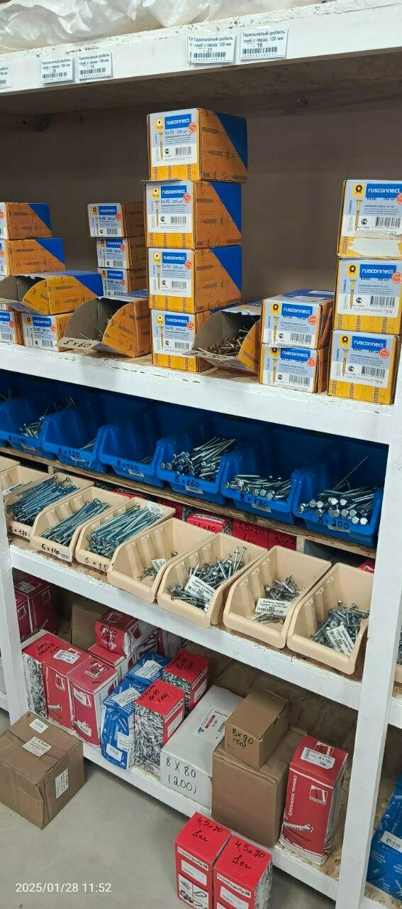 Крепёж на любой цвет, вкус и размер. Цены очень приятные. Есть парковка. Возят под заказ. Рекомендую!