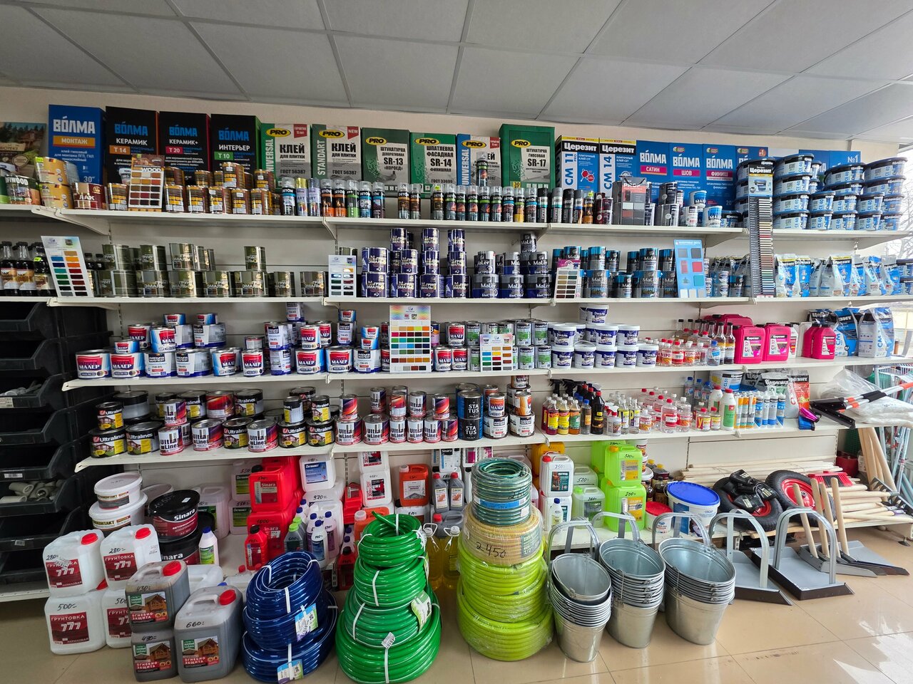 Полностью обновили магазин в 2025г. Очень большой ассортимент добавили. Есть колеровочная машина для красок, так что любые цвета в вашем распоряжении. Однозначно магазин стал сильно лучше!!!