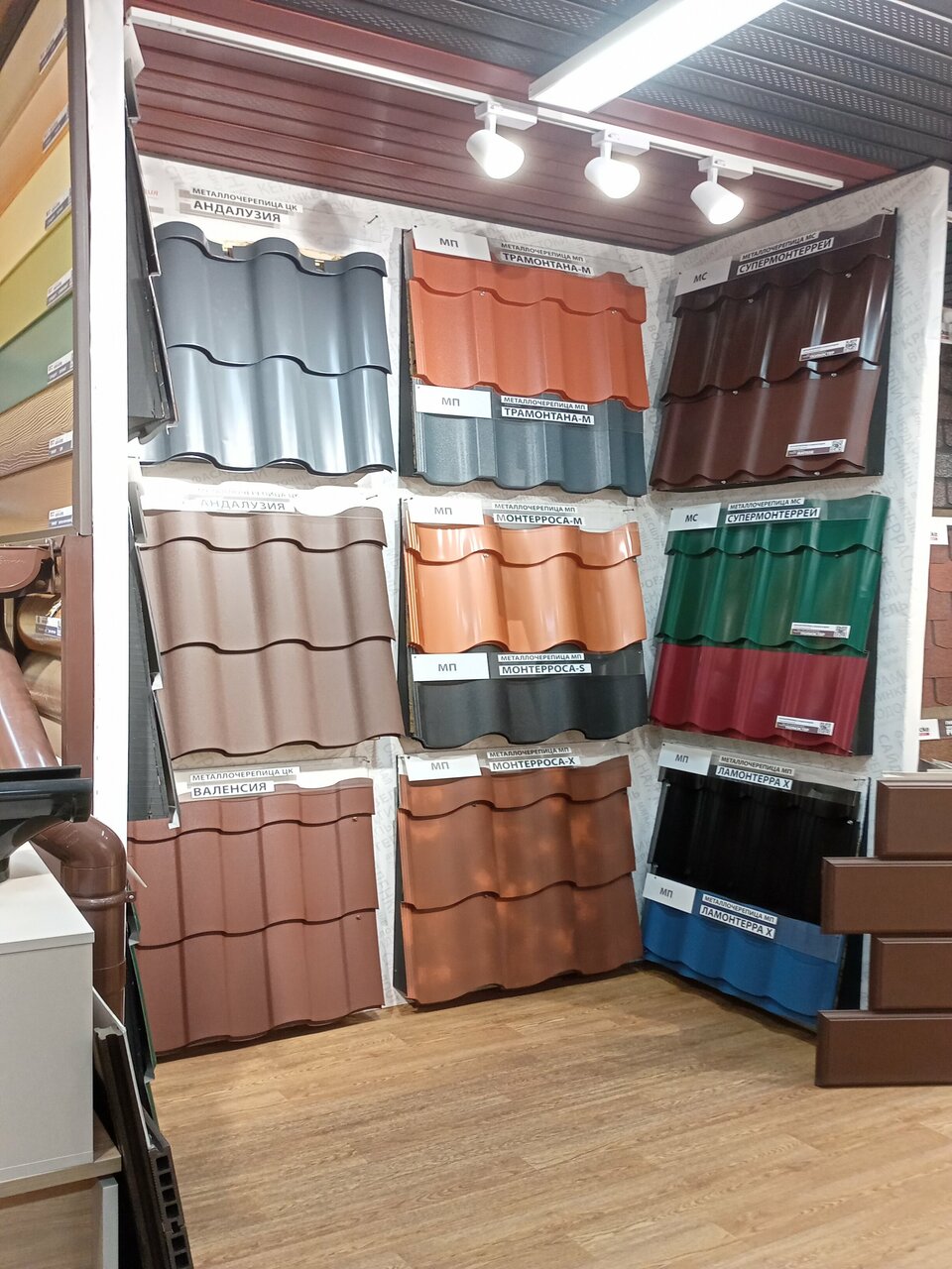 Есть практически всё, что касается кровли и фасада. По мере надобности закупаюсь у них. Цены пока что устраивают.