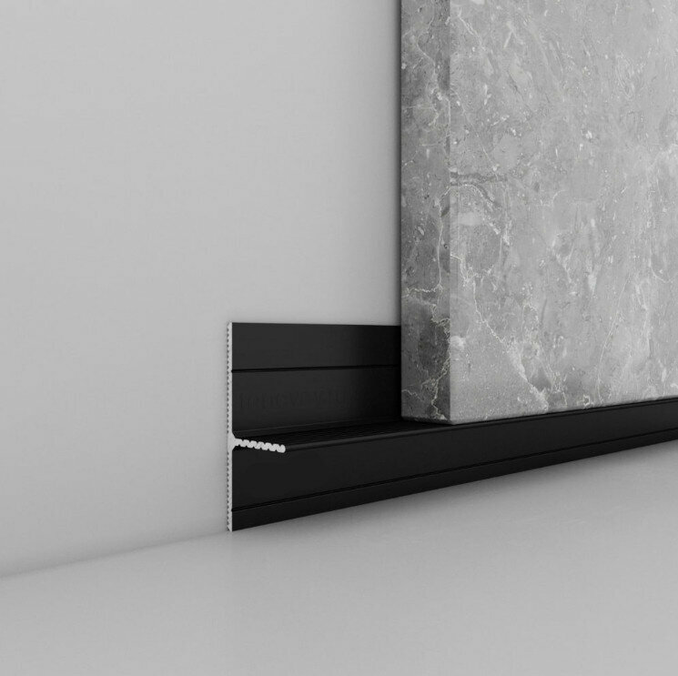 Замена обычному плинтусу для тех, кто хочет нестандартных решений! Подойдет для современных интерьеров в стиле 'минимализм', а также отлично решит задачу стыка напольного покрытия со стеной в местах установки мебели. Цвета: серебро, шампань, черны...