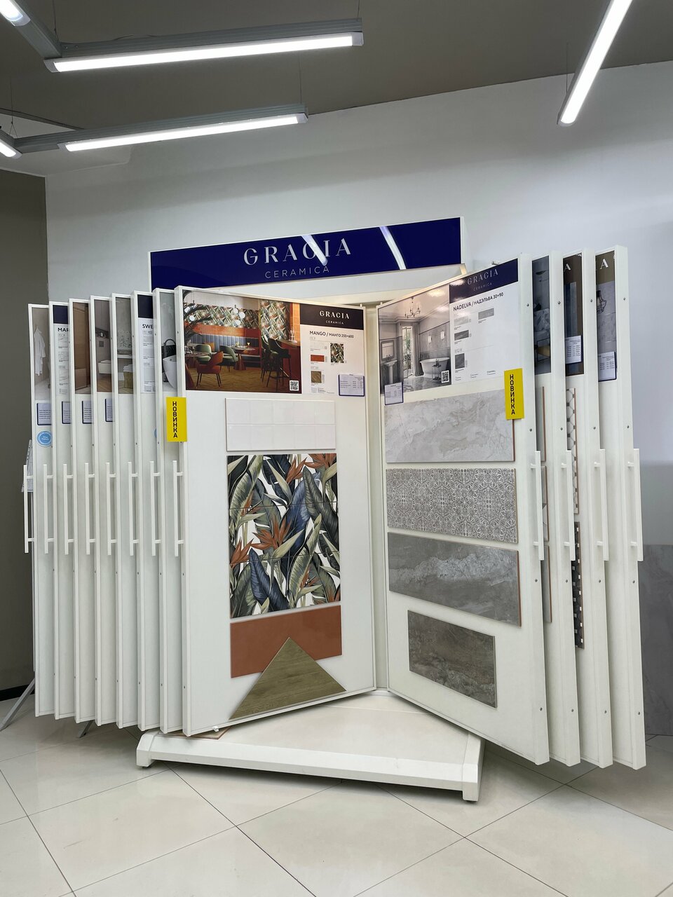 Чистый, приятный магазин. Большой выбор как цветов/дизайнов керамической плитки, так и размеров. В продаже есть сопутствующие товары — клея, затирки. Вежливый персонал, повезло поработать со Светланой! Посоветовала несколько вариантов дизайна ванной, сделала 3D-проект, быстро организовала доставку (доставка, к слову, вышла бесплатной).