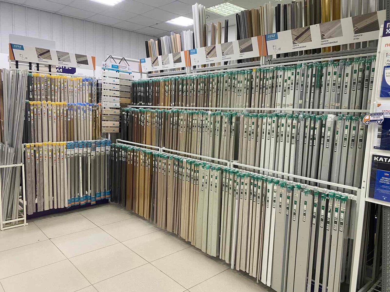 Отличный магазин с огромным ассортиментом! Плинтусы, пороги, профили различные, не перечислишь всего. Консультанты всегда подскажут, помогут с верным решением. Рекомендую!