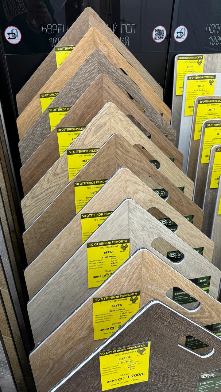 Большой ассортимент, продавец консультант очень вежливый и не навязчивый , хорошо помог при выборе ламината и дверей