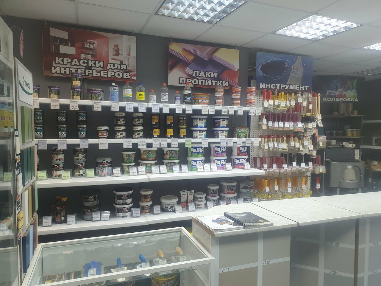 - Наличие образцов для "примерки"; Качественный подбор цвета и колеровка; Товар в наличии; Помощь в подборе сопутствующих товаров (кисти, валики); Доступные цены