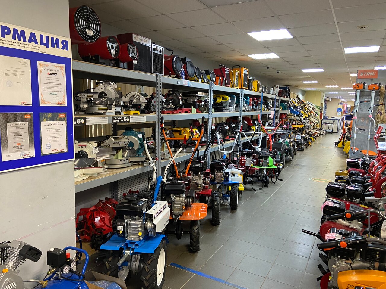 Мир инструментов – строительный магазин в Иваново, предлагающий широкий ассортимент инструментов и оборудования для ремонта, строительства и садовых работ. В каталоге представлены бренды Bosch, DeWalt, Makita, Stihl, Kärcher и другие, а также режущий, абразивный и алмазный инструмент. Магазин предоставляет услуги ремонта бензо- и электроинструмента, триммеров, бензопил, воздуходувок, а также аренду оборудования.