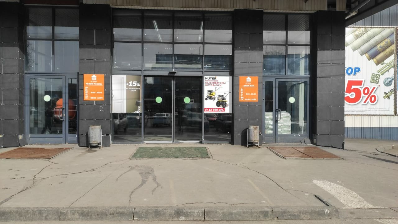Магазин с очень удобной парковкой. Широкий ассортимент для ремонта и квартиры и дома, Персонал ранее был более профессиональный чем сейчас (но это везде так). На кассе очередей больших нет, так что долго не простоите. Широкий ассортимент техники (снегоуборочной и для огорода). Есть доставка товара по адресу. Смотрите внимательно на товар который приобретает иногда он идет не доукомплектованный (лопата снегоуборочная порой идет без саморезов)