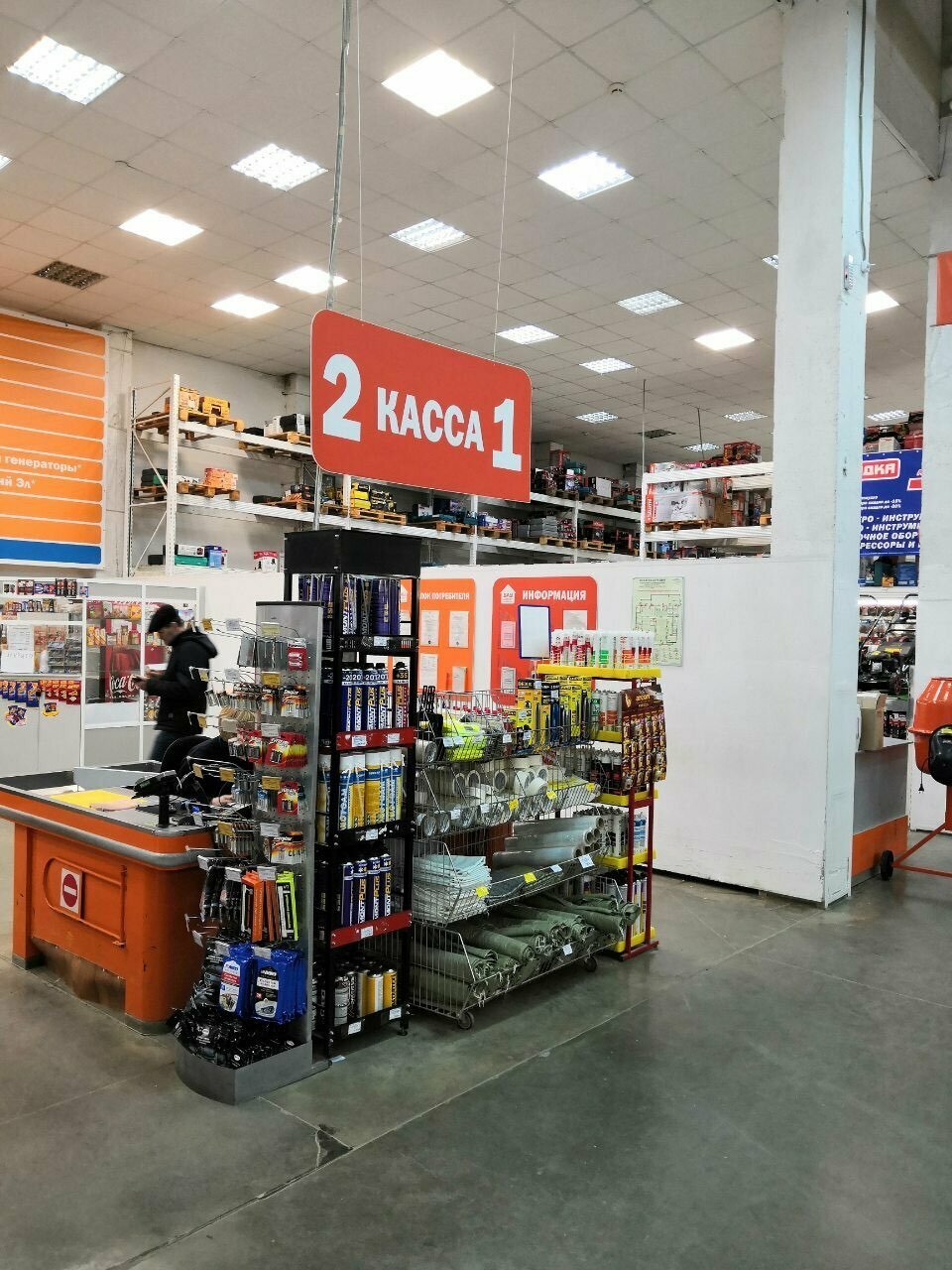 Не понравился охранник на выходе, который проверяет покупки. Не видел такого в других магазинах. А так хороший ассортимент по инструментам и строй материалами.