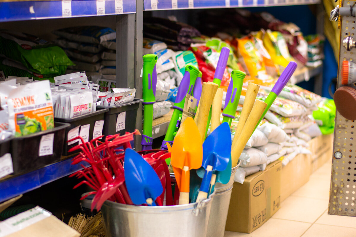 - Широкий ассортимент строительных, хозяйственных и садовых товаров