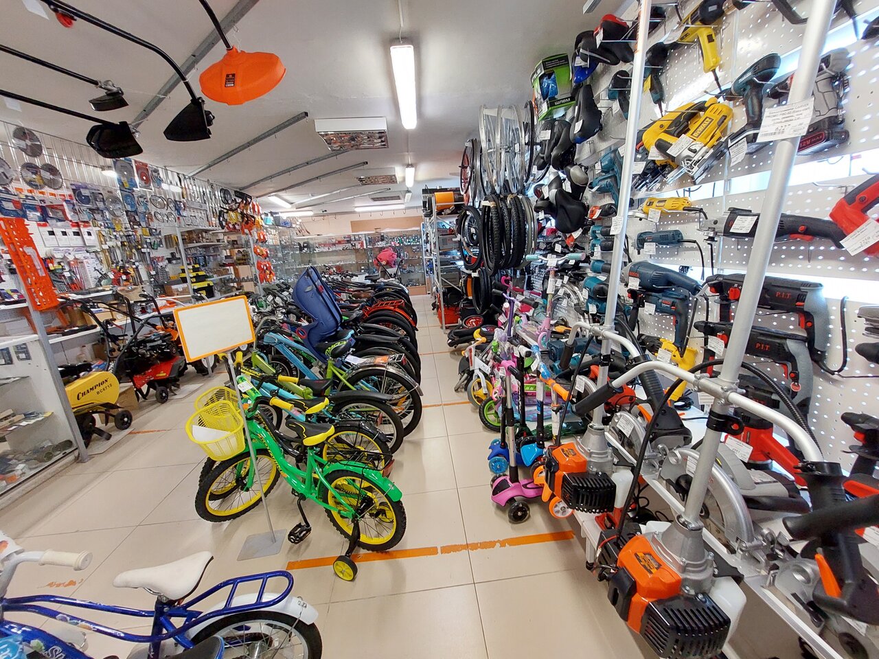 Хороший магазин. Есть запчасти на бензопилы. А также можно купить снегокат ребёнку, велосипед. Можно сказать много-профильный магазин.