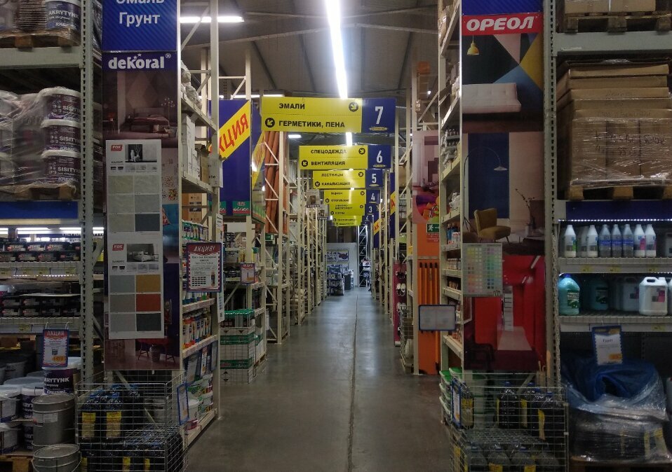- Широкий ассортимент (электрика, сантехника, отделочные материалы)