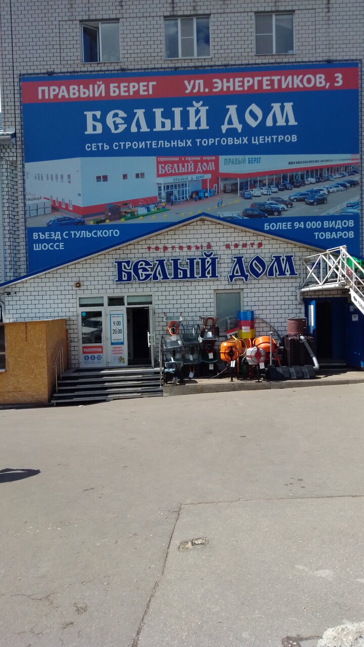 «Белый дом» — строительный магазин в Калуге, расположенный по адресу: ул. Степана Разина, 126. Предлагает широкий ассортимент материалов, инструментов и товаров для строительства, ремонта и отделки. Работает ежедневно с 09:00 до 20:00. Контакты: колл-центр +7 (4842) 33-32-16, сайт: (https://belydom.ru/).
