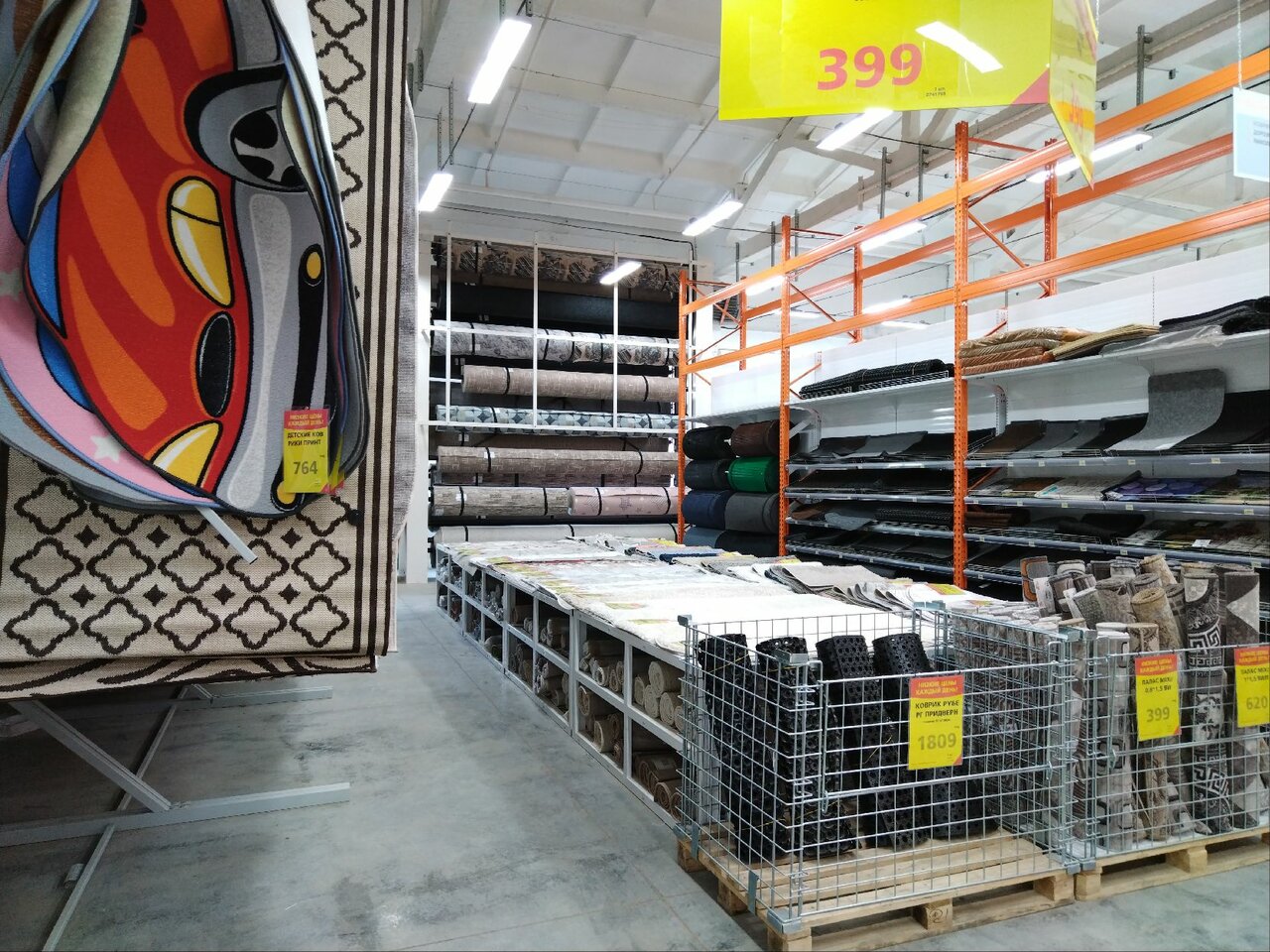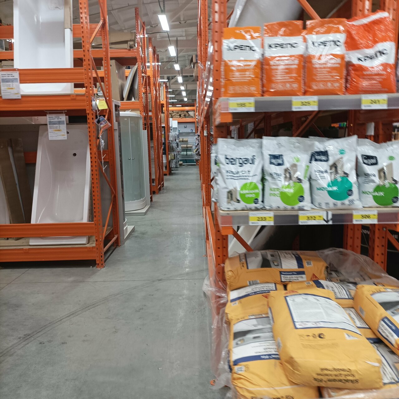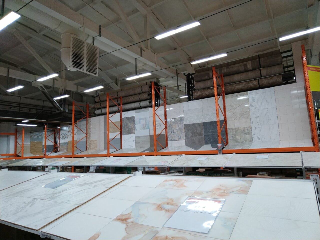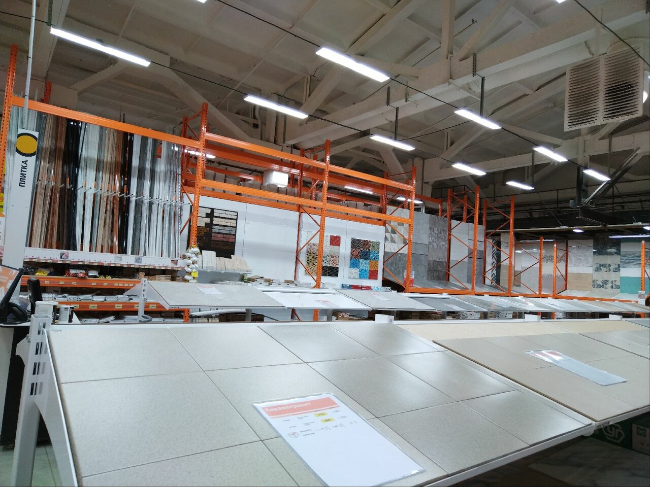 - Большой магазин с широким ассортиментом (обои, плитка, ламинат и т. д.)