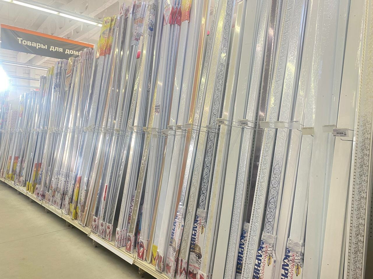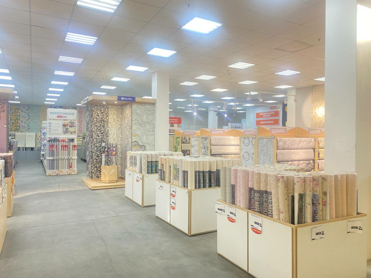 Много всего, вот только до сих пор как будто только начали работать, недостаточно продумано размещение товара. Недостаточен ассортимен обоев.