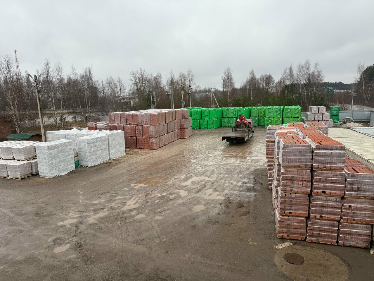 Основная специальная блоки, кирпич, плитка. Есть выбор. У меня было несколько случаев, когда владелец магазина не давал вывозить купленные материалы на присланном мною манипуляторе, навязывал свой транспорт.