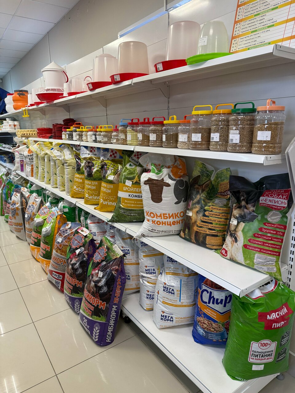 - Широкий ассортимент для стройки и дома; Низкие цены на комбикорма; Есть корма для животных и кур; Можно найти редкие товары.; Работает 7 дней в неделю