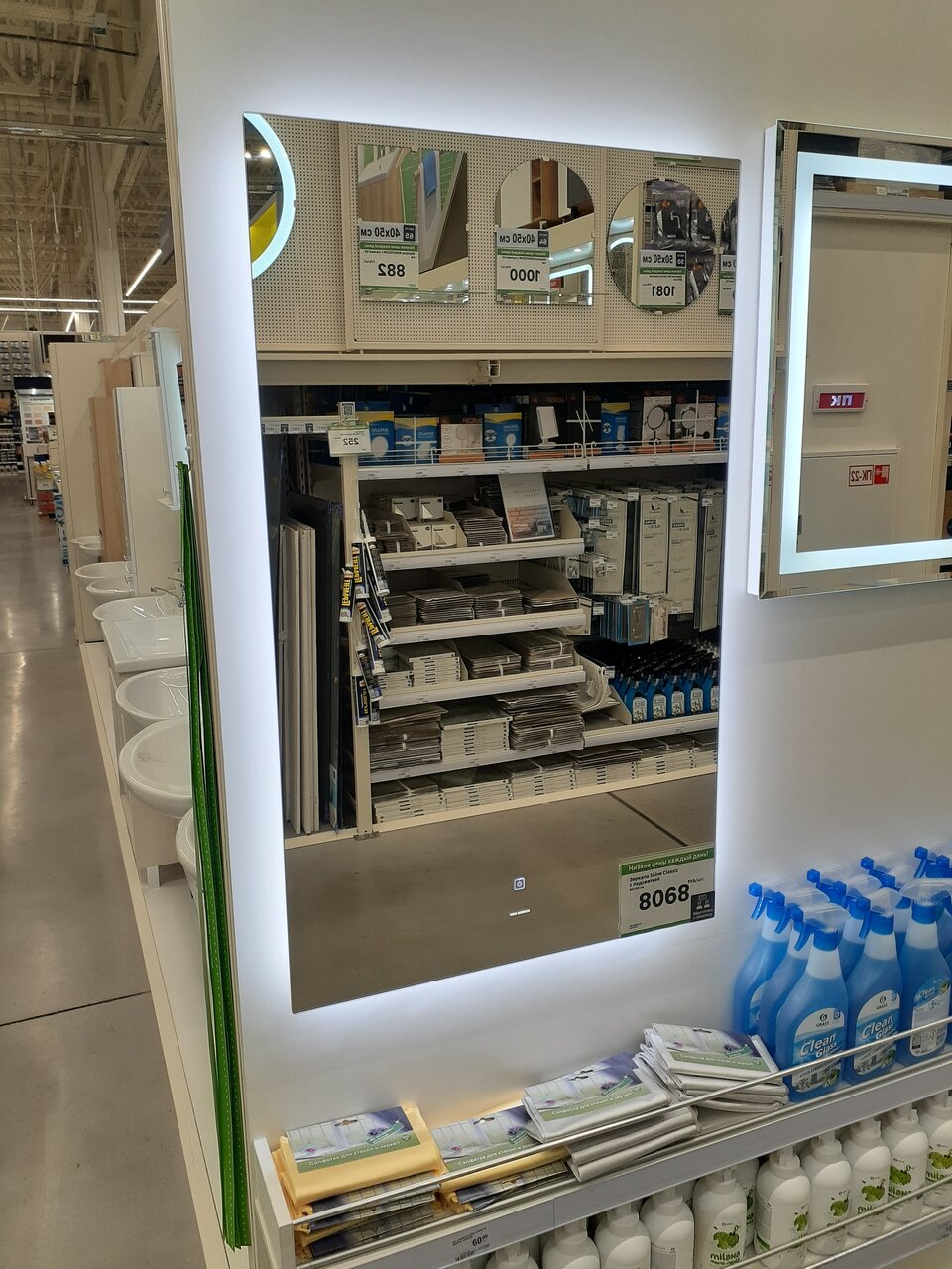 Гипер хороший. Мне сначала показалось, что он даже больше чем на ул. Амирхана. Но меня разубедили. Приезжала сюда за таблетированной солью и бетонконтактом. Сама не разобралась, что и где лежит. Лабиринт Обратилась за помощью к ‘зелёному человечку’ — сотруднику, он на словах, что то объяснил, но я так и не нашла Чисто случайно, встретила знакомого, работающего в ЛеманПро, совершенно в другом отделе и он любезно провел меня по магазину, показав, где что лежит, вызвал менеджера из отдела стройматериалов который , в свою очередь, проконсультировал по товару и даже помог сложить всё в тележку. Что я хочу сказать,- просто так никто нормально не поможет. Делают вид, что сильно заняты, хотя просто стоят и разговаривают. Если бы не встретила знакомого сотрудника, блуждала бы около часа в поиске нужного товара.