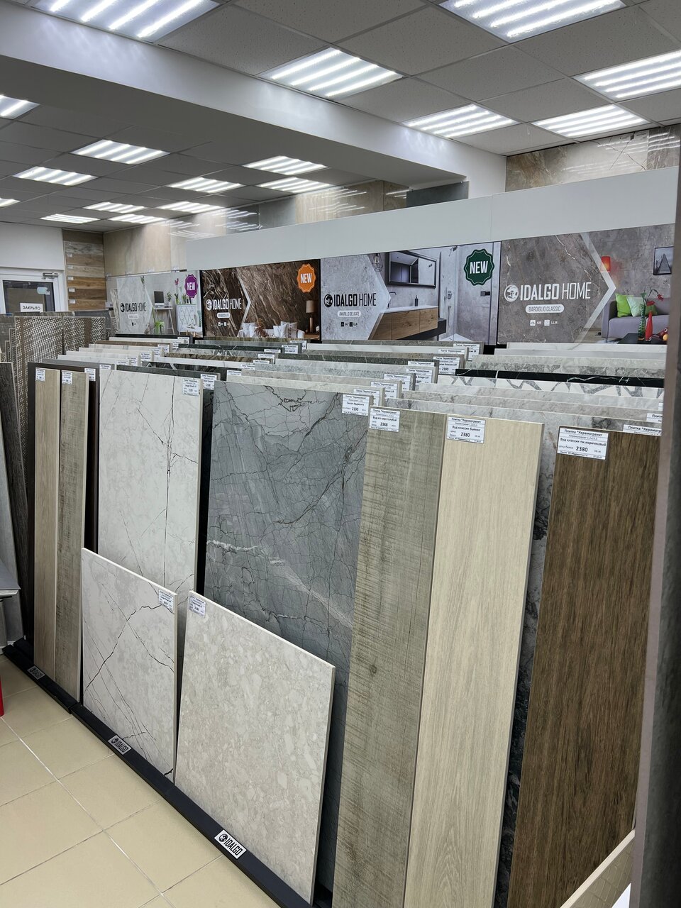 - Большой ассортимент плитки и керамогранита