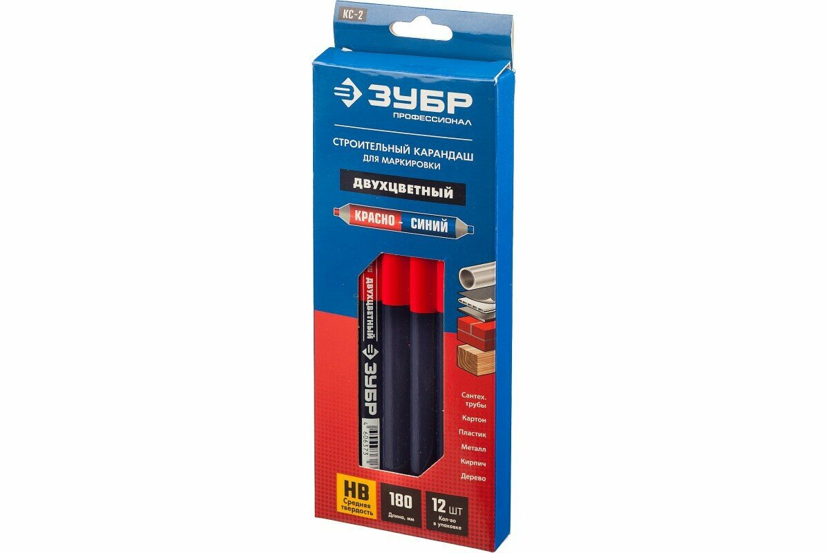 - КАРАНДАШ строительный 'ЗУБР' ПРОФИ с увеличенным грифелем. 1₽