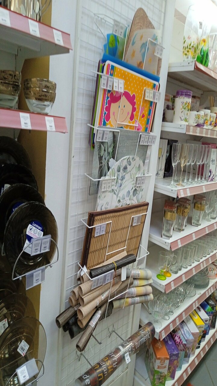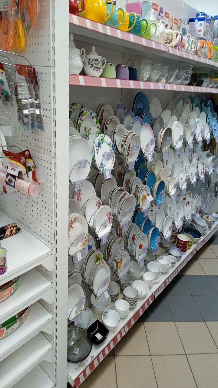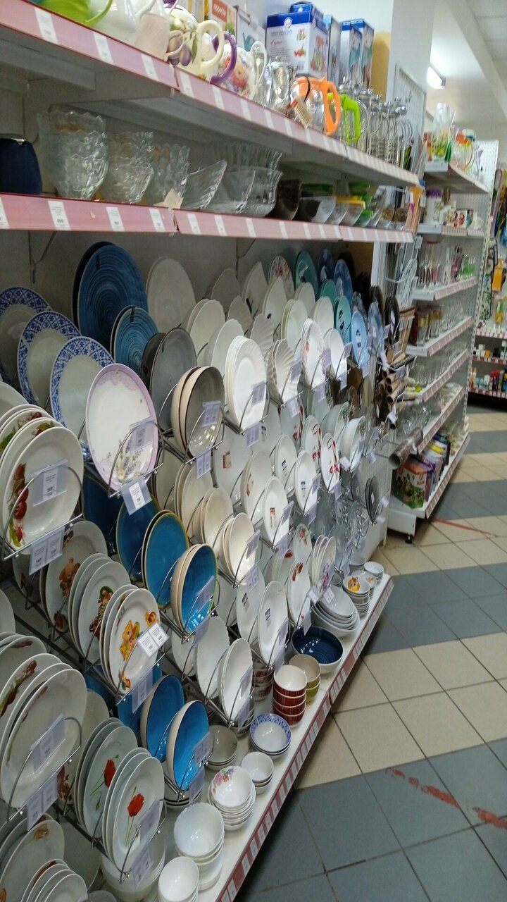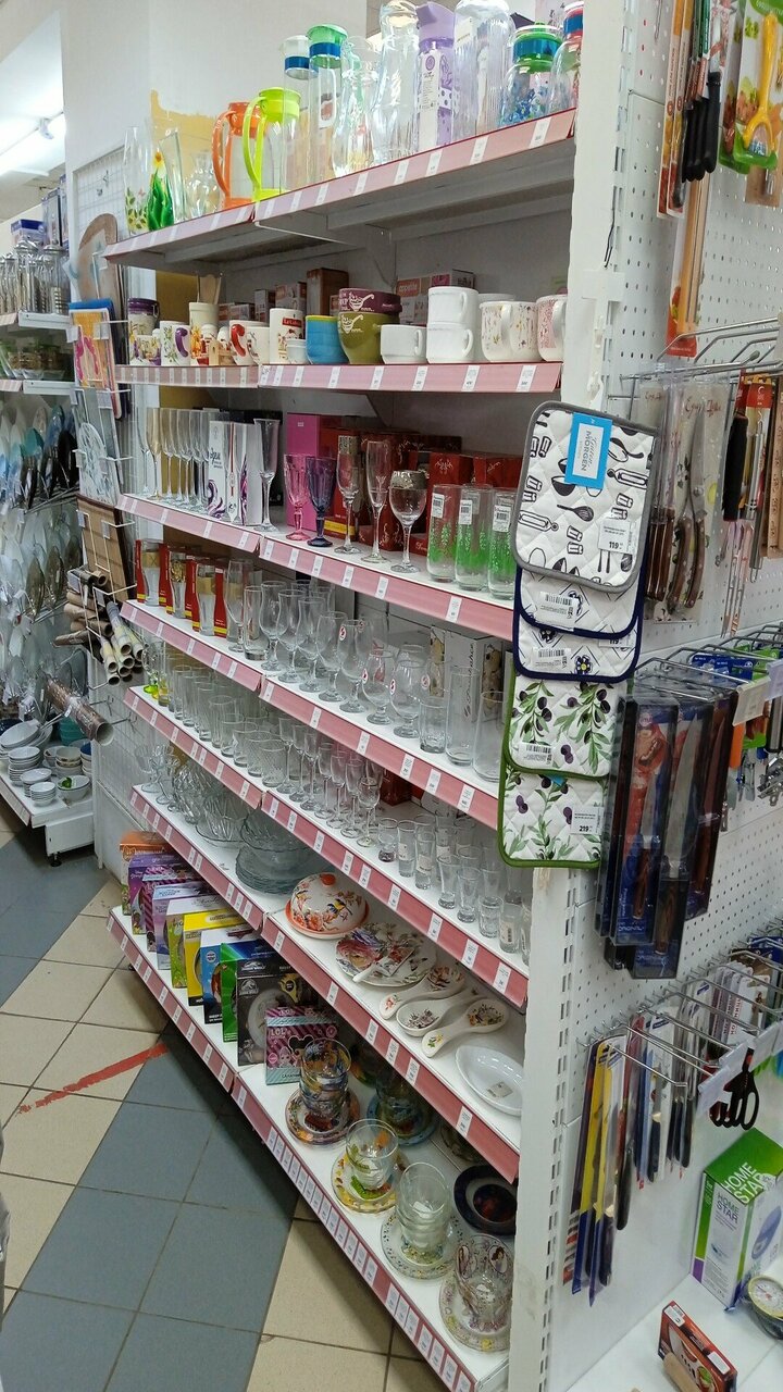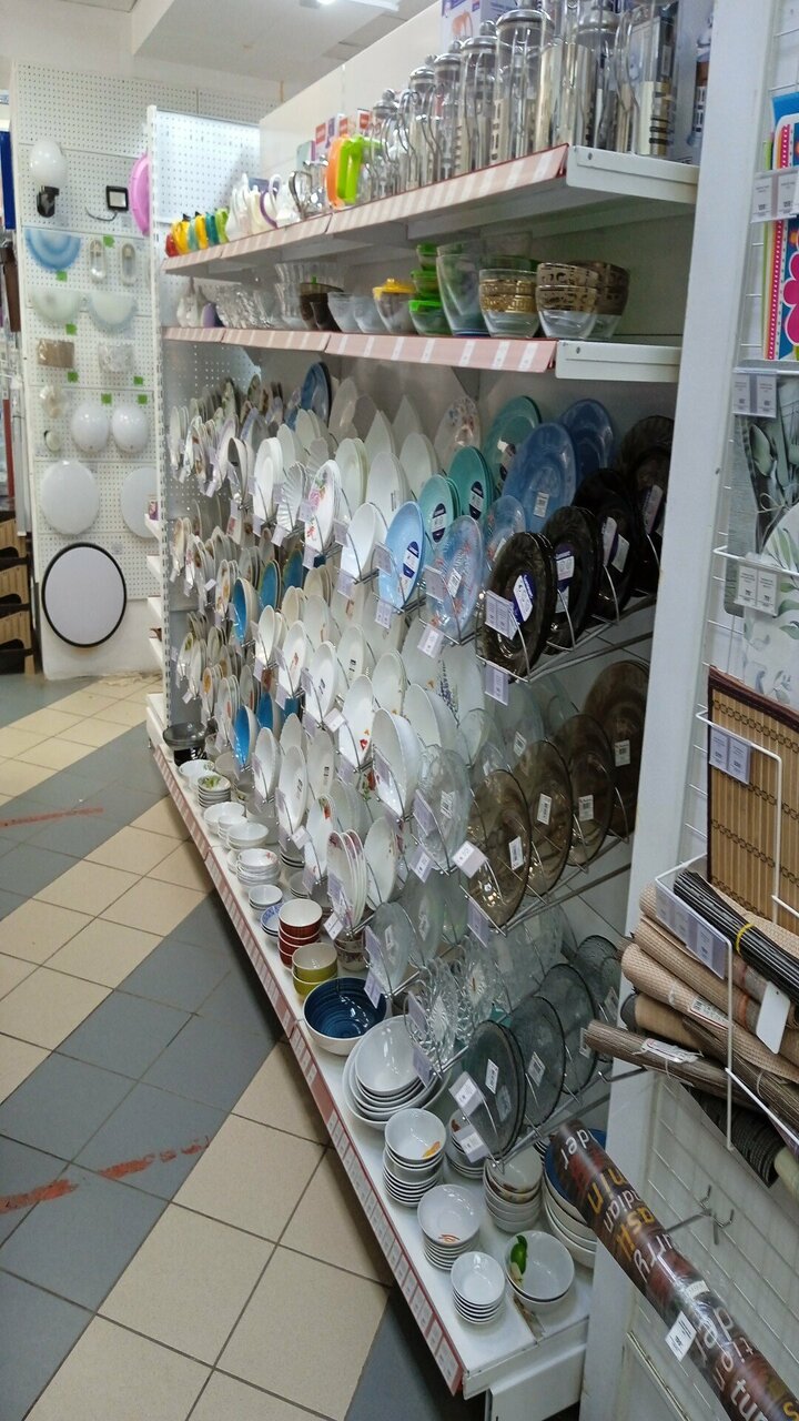 Хороший магазин. Цены приемлемые. На сковороды цены нормальные. Соответствие цены и качества. Большой выбор обоев, ленолиума и плитки.А так же насосов и мебели для ванн .