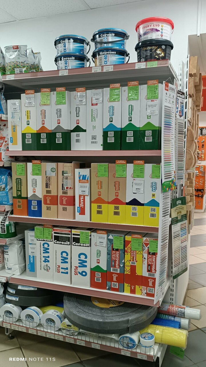 - Умеренные цены (по некоторым отзывам).; Широкий выбор материалов, хорошая раскладка; Возможность колеровки красок; Соответствие цены и качества; Единственный хозяйственный магазин, работающий до 20:00 в городе