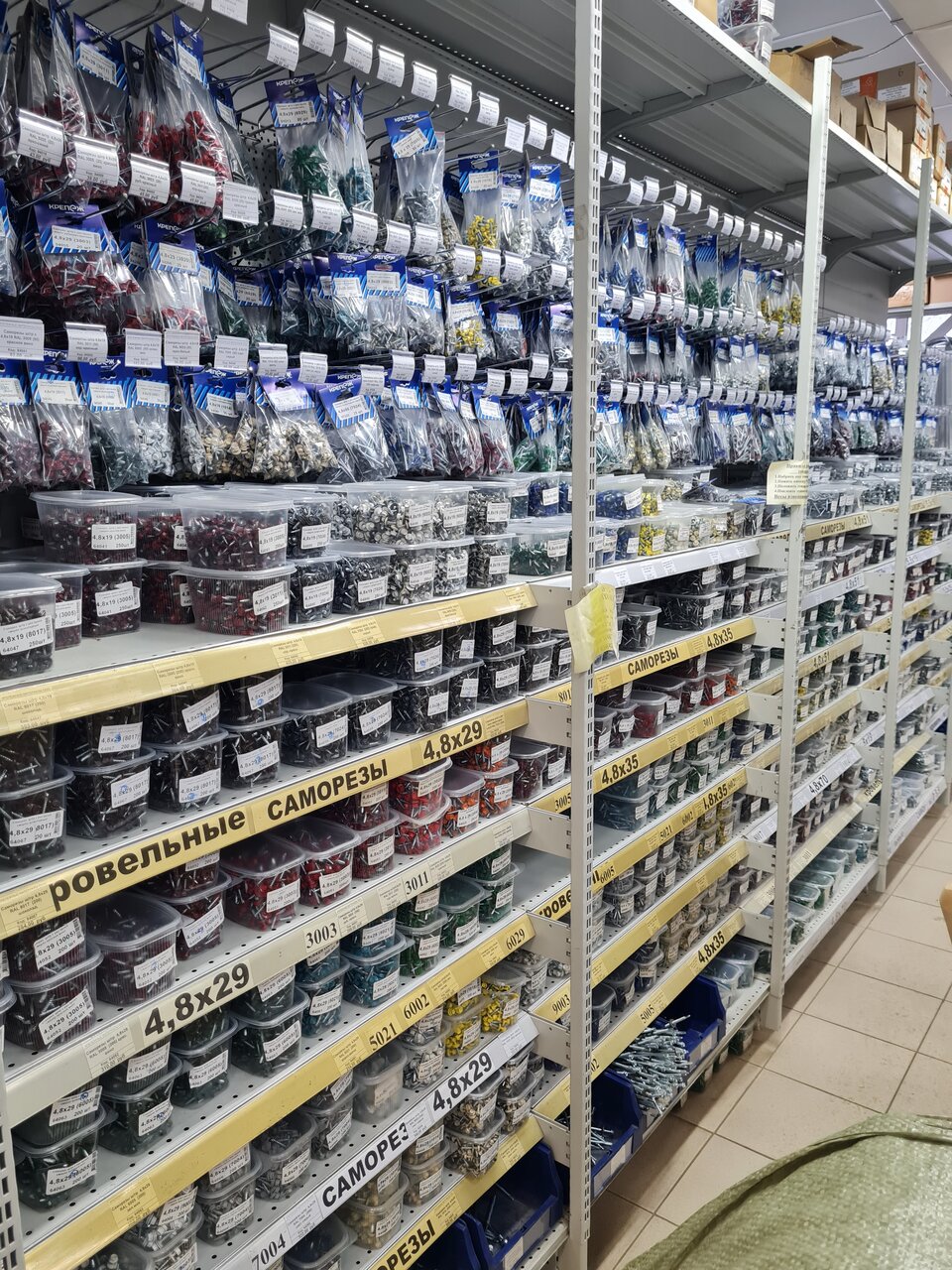 Отличный магазин. Выбор огромный. В плане крепежа, есть реально всё. Саморезы качественный, с биты не слетают, острые. Цены даже ниже чем в других строительных магазинах.