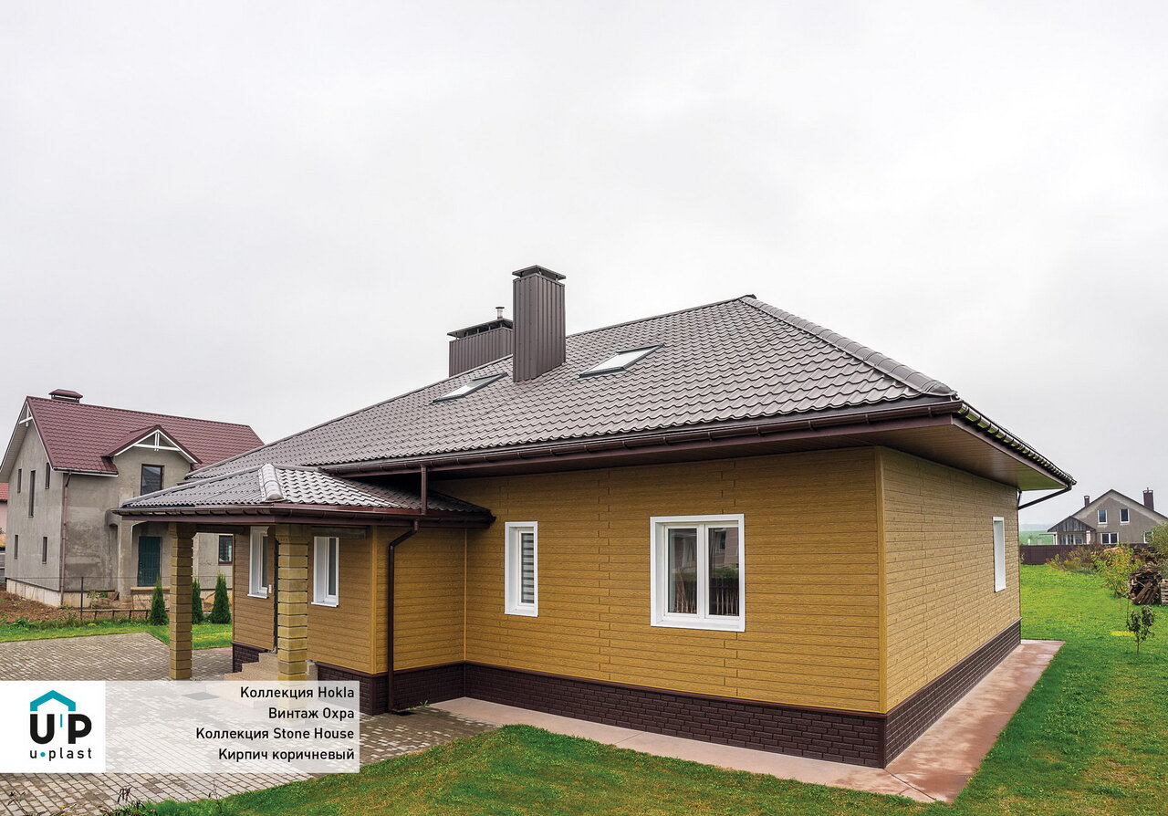 Сайдинг / Фасадные панели Ю-Пласт Stone House S-Lock Клинкер Горчичный. Партнёр компании Ю-Пласт. Фасадные панели, сайдинг нового поколения, сайдинг