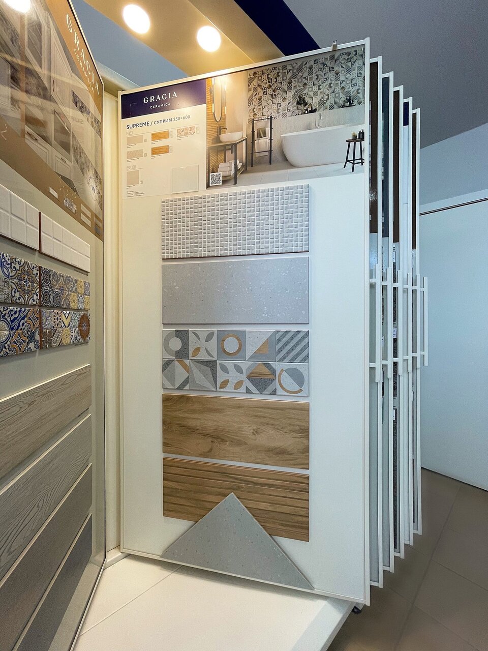 - Широкий ассортимент плитки и керамогранита