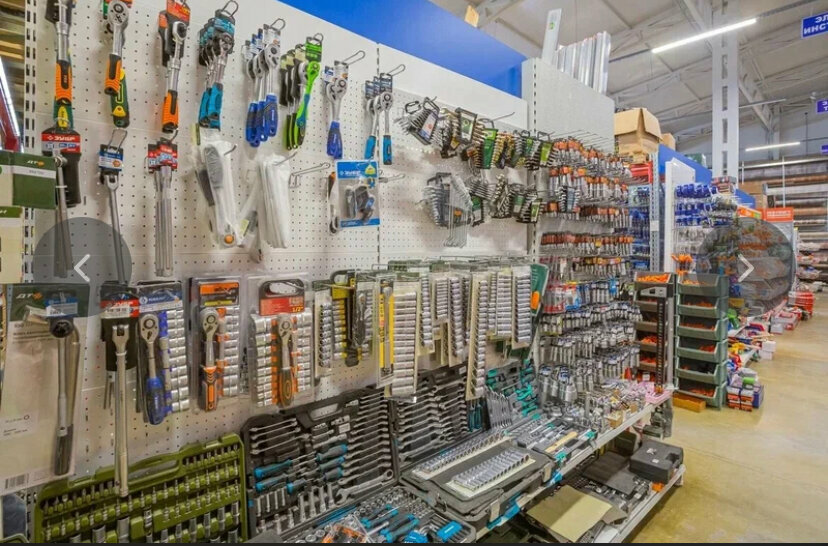 - Большой выбор стройматериалов и инструментов.
