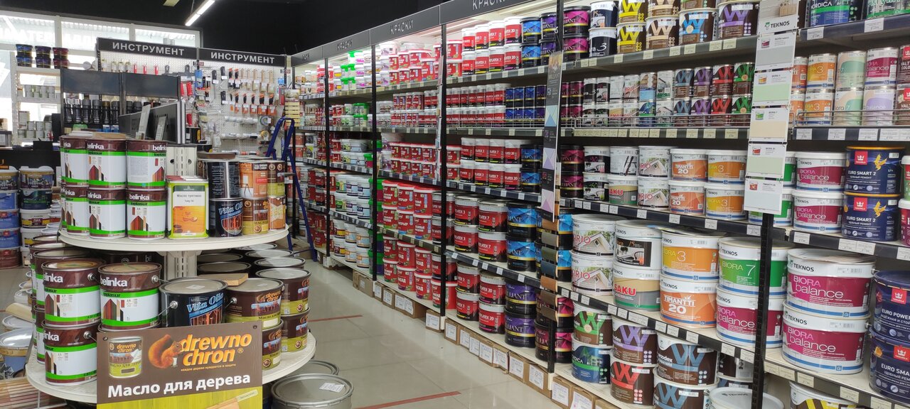 - Наличие редких товаров (например, матовая краска с колеровкой)