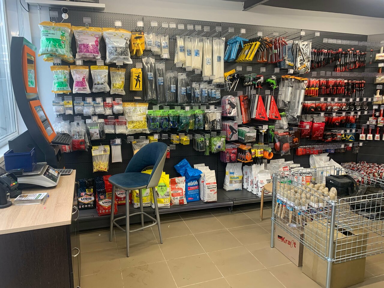 - Хороший ассортимент товаров для строительства и ремонта
