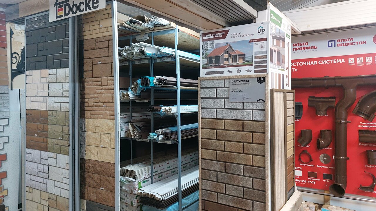 СэлФасад – строительный магазин в Клину, расположенный по адресу ул. Терешковой, 10. Специализируется на продаже материалов для фасада и кровли: лепнина из полиуретана, фальцевая кровля, профнастил, металлочерепица и битумная черепица. Режим работы: пн-пт 08:00–19:00. Контакты: +7 (963) 771-65-73, сайт: (http://www.сайдинг-клин.рф/).
