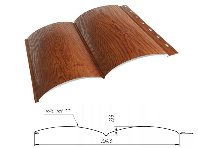 Сайдинг «Корабельная доска» является наиболее популярным в России. Имитирует дощатую обшивку. Благодаря своей форме этот вид профиля прост в монтаже и удобен в эксплуатации. Чаще всего устанавливается горизонтально.
