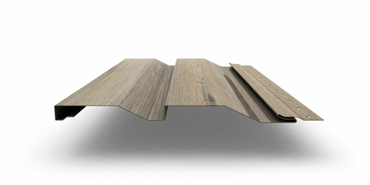 ЭкоБрус 3D - металлический сайдинг с яркой, объемной фактурой дерева!Специальные накатки обеспечивают реалистичную текстуру древесных волокон.