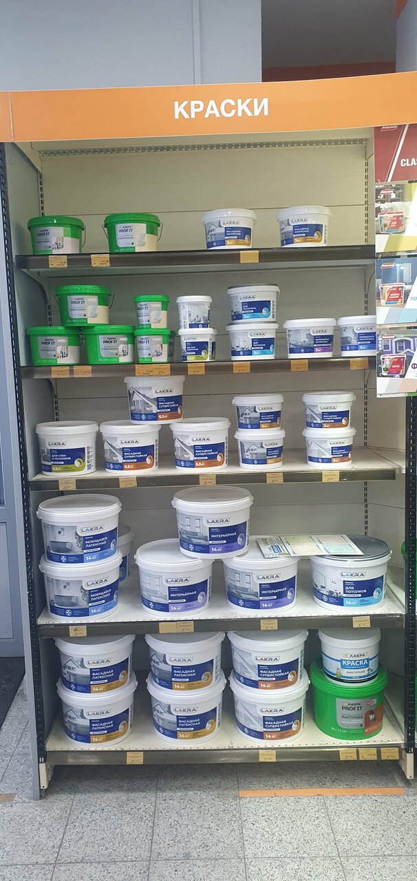 Прекрасный магазин, в Строй Ленд, выбор красок огромный, персонал разъясняет как и почему……. Есть колирование под ваш цвет… Рекомендую