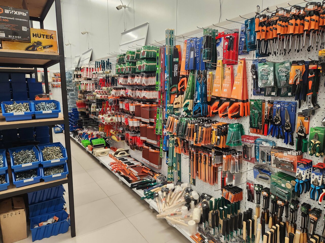 - Большой выбор крепежа, садовой техники и инструментов