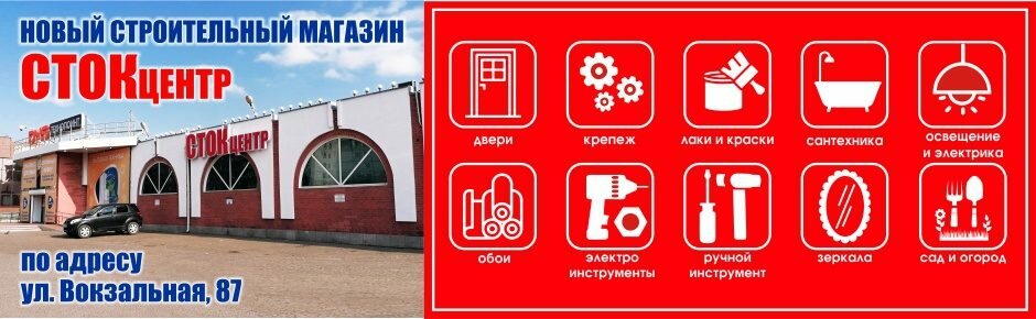 Сток-центр — строительный магазин в Комсомольске-на-Амуре, расположенный по адресу: ул. Вокзальная, 87. Ассортимент включает материалы, инструменты и товары для строительства, ремонта и отделки. Режим работы: ежедневно с 09:00 до 20:00. Контакты: телефон +7 (924) 927-11-41, сайт (http://stok-centr.com/).