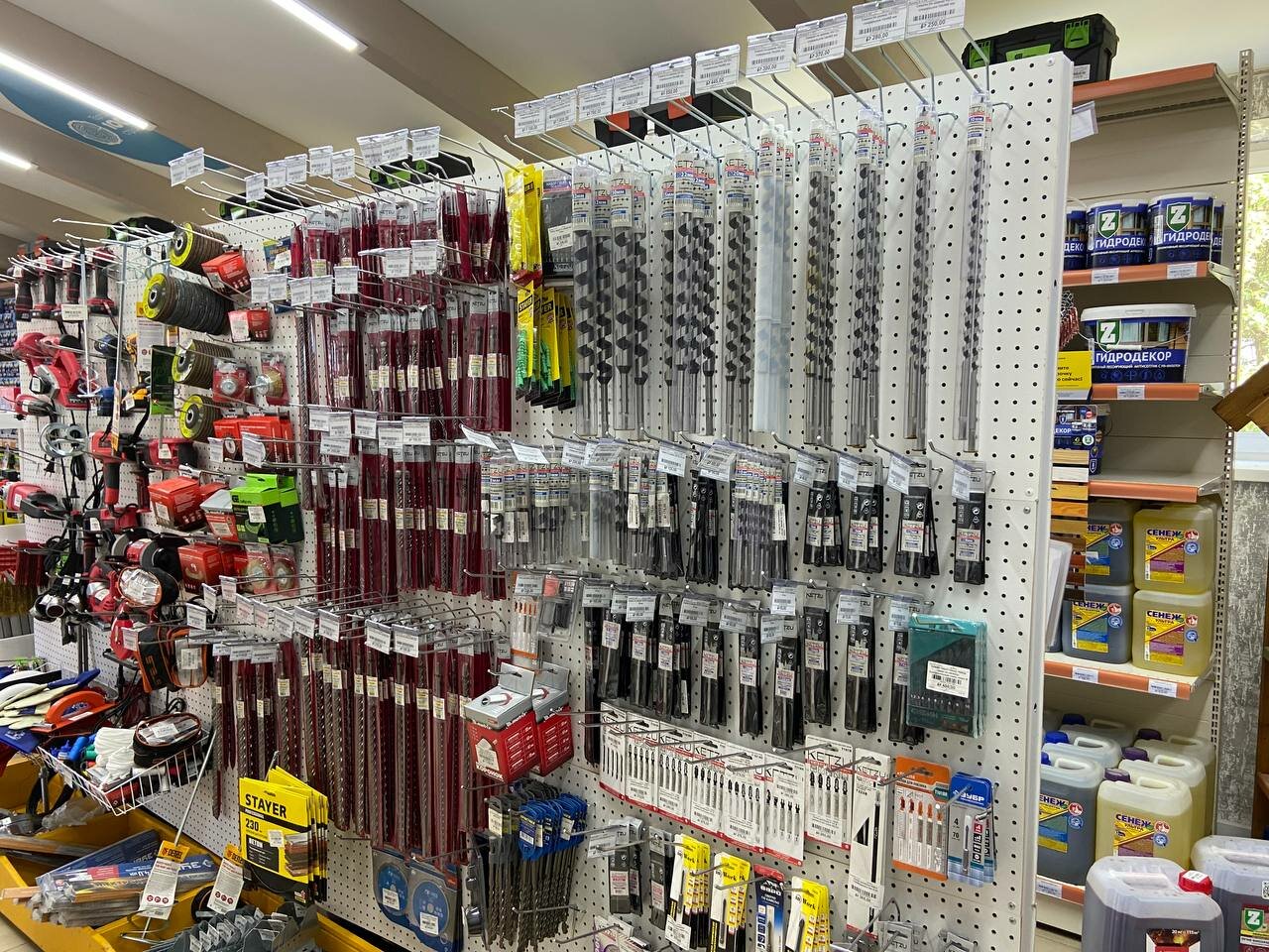 Много материалов. Минус — нет ценников на улице. Приходится все узнавать у персонала.