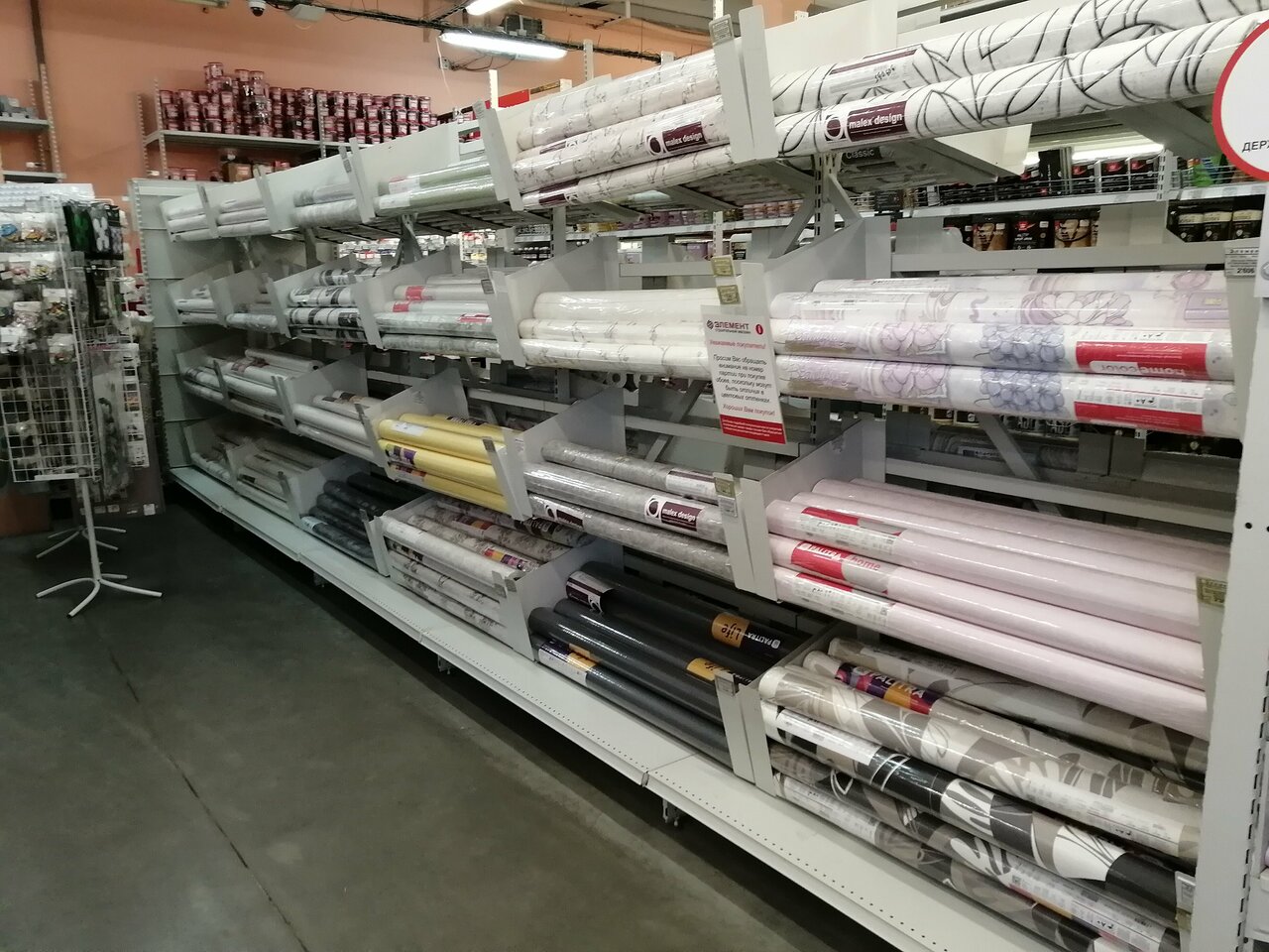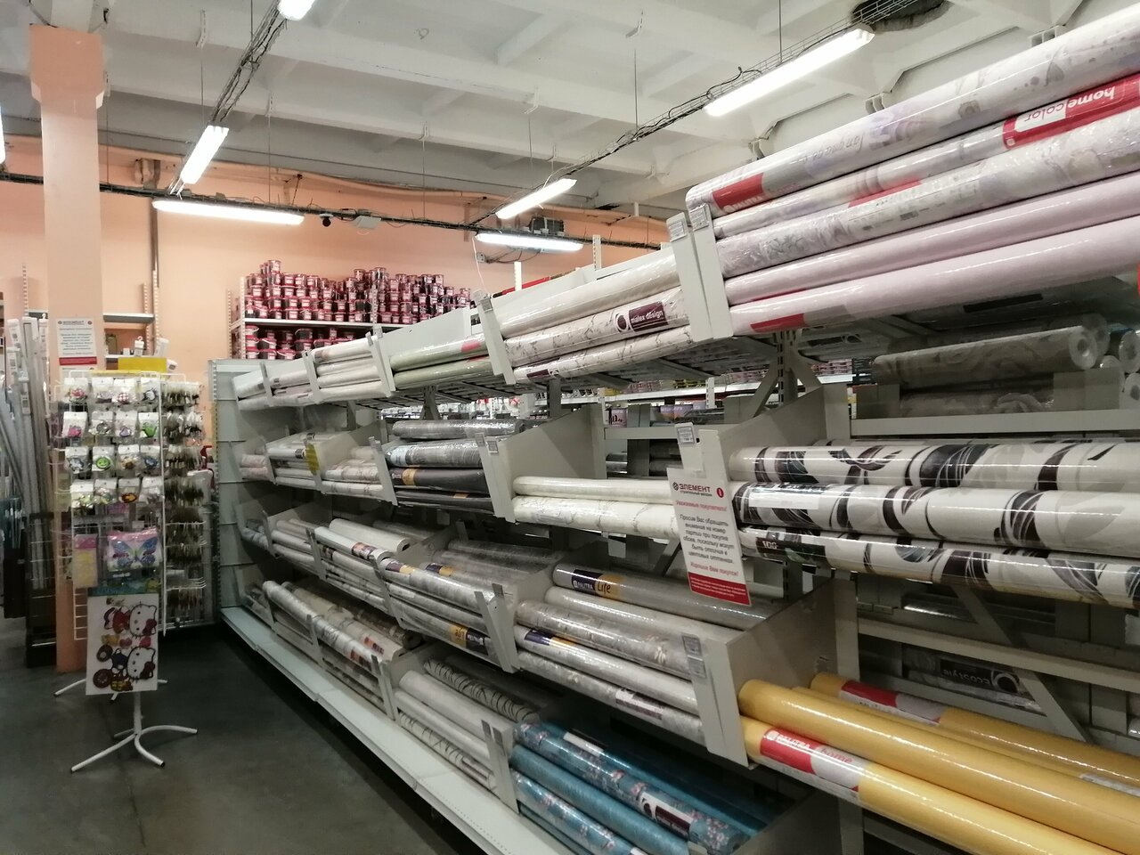 Магазин не плохой, брали там обои для ремонта, т.к в других магазинах ничего не нашли. Нам сразу дали скидочную карту, которую потом можно обменять на карту с большей скидкой. Консультант сказала взять 1 упаковку клея, но нам её не хватило
