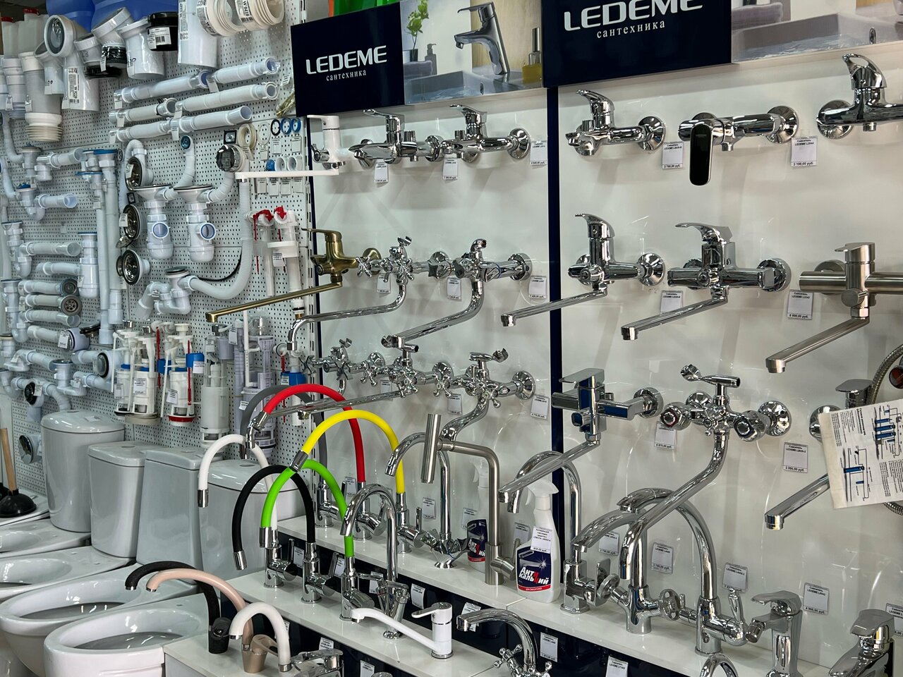 - Разнообразие в отделах (канализация, водоснабжение, скобяные изделия, краски)