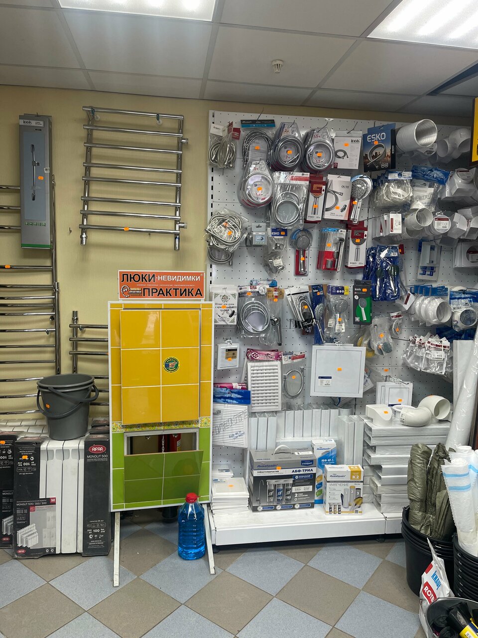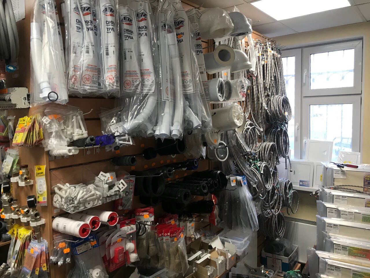 Почти вс, что может понадобиться в домах, где этот магазин расположен, хоть по сантехнике, хоть по крепежу.