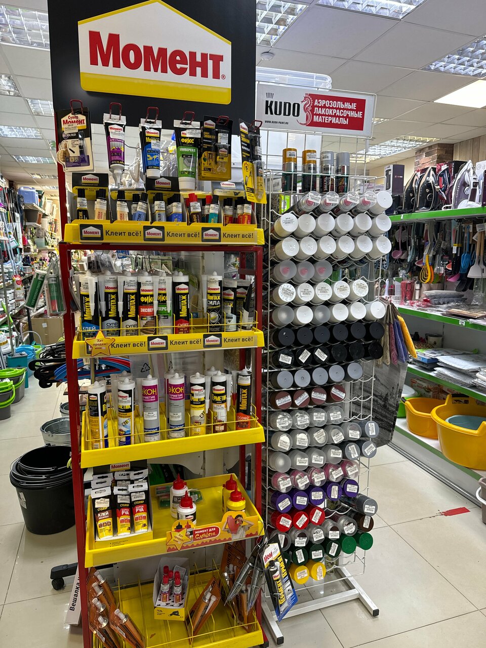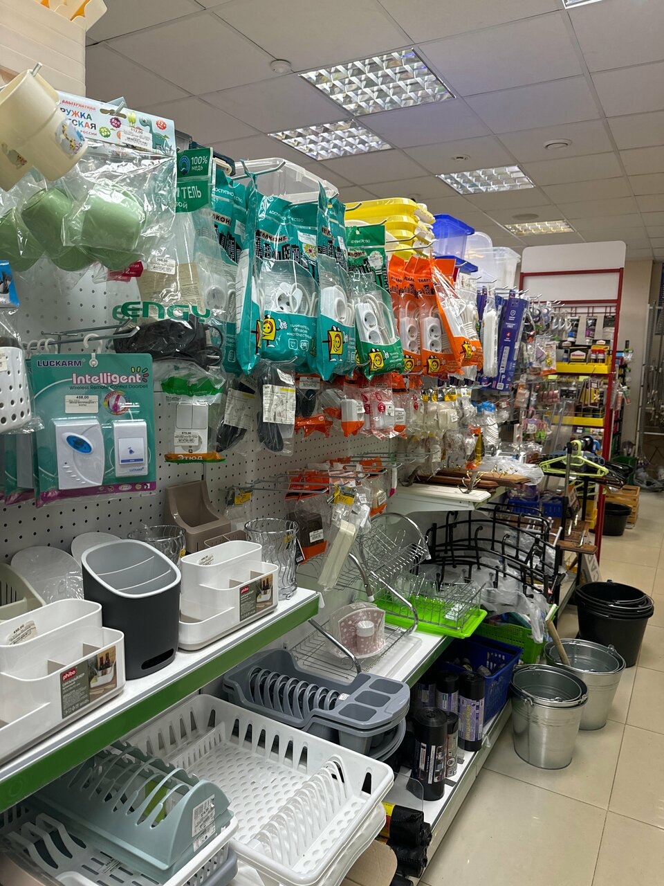 - Большой ассортимент товаров (посуда, хозтовары, ремонтные материалы, мелочи)